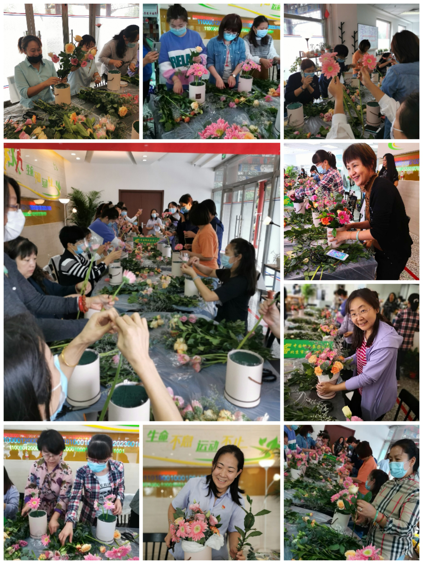 活動(dòng)伊始,每個(gè)桌上都擺放好鮮花、花泥、和剪刀,花藝王老師首先講解了插花的由來(lái),簡(jiǎn)述了東西式插花風(fēng)格,認(rèn)識(shí)花材和花語(yǔ),學(xué)會(huì)辨別花材是否新鮮,以及鮮花的養(yǎng)護(hù)知識(shí),最后介紹了桌花的基本流程及注意事項(xiàng),然后引導(dǎo)會(huì)員們開始動(dòng)手制作插花。由于每個(gè)人插的速度不同,誰(shuí)哪里有疑意的老師會(huì)單獨(dú)輔導(dǎo)。經(jīng)過(guò)近一小時(shí)的認(rèn)真插花,第一盆鮮花插好了!隨后,陸陸續(xù)續(xù)更多的會(huì)員完成了自己的作品。大家?guī)е约旱淖髌泛嫌傲裟睿樕隙季`放出鮮花般美麗的笑顏!(北京郵政工會(huì))