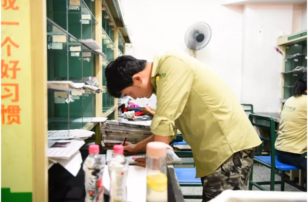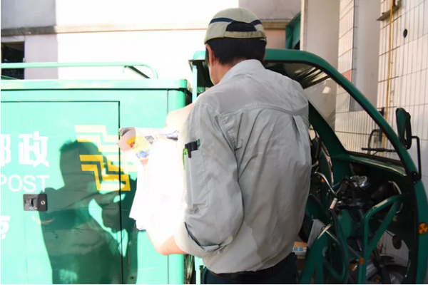 “平常每天清晨七點多就到投遞站分發報紙。現在天太熱了,溫度太高,為避開高溫出班,我們提前到六點就到崗提前做好出班前的報紙分發工作。”投遞員其軍介紹說。“每天出班二次,上午七八點左右出班,趕在中午11點左右回班。下午二點多出班,當天郵件量多時,回班時間一直到下午六七點。”