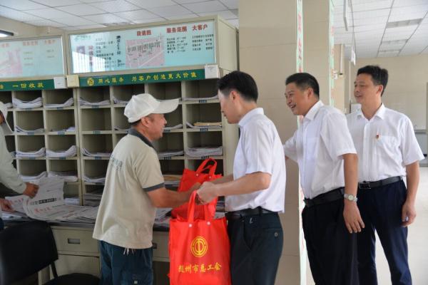 炎炎夏日,驕陽似火。7月27日一大早,隨州市委常委、組織部長、總工會主席甘國棟專程來到隨州郵政分公司,看望慰問在高溫下堅守一線的郵政職工,給他們送來清涼消暑慰問品,代表市委、市總工會向奮戰在高溫一線的廣大郵政職工表示慰問和感謝。市總工會副主席錢玉梅、經審委主任徐秀清一同慰問。