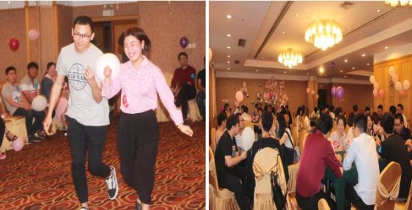 活動(dòng)現(xiàn)場,浪漫的粉色氣球拍照區(qū)、巨大的粉色表白墻顯得格外引人矚目。持續(xù)4 個(gè)多小時(shí)的聯(lián)誼活動(dòng),流程安排相當(dāng)緊湊?!皠?chuàng)意團(tuán)隊(duì)展示”、“串名字游戲”、“夾氣球”等環(huán)節(jié),不一而足。大部分的單身青年男女都是第一次參加聯(lián)誼活動(dòng),既感到新鮮刺激又感到靦腆羞澀。聯(lián)誼會(huì)剛開始,他們只是靜坐,后來看到活動(dòng)逐漸活躍,也紛紛加入互動(dòng)游戲、交流中。隨著各種游戲以及歌舞的穿插互動(dòng),讓現(xiàn)場的熱烈氣氛指數(shù)不斷爆表,單身青年們打開相識(shí)之門,交談甚歡。活動(dòng)結(jié)束后,不少單身男女嘉賓互相留號(hào)碼、相約吃夜宵,以進(jìn)一步交流。