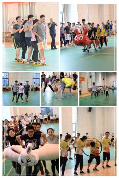 在王裕林主席宣布運動會開幕后,比賽正式開始。此次趣味運動會共包含毛毛蟲競速、眾星捧月、龜兔賽跑、協力競走、海底撈月、呼啦圈接力、2分鐘集體跳繩、摸石過河、50米三人同進走和袋鼠運瓜十個集體項目,采取"團隊作戰"的積分模式。比賽既有競技比拼、體力角逐的激烈性,又充滿互助合作、友好交流的趣味性。