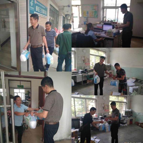 2018年7月20日,雙鴨山市郵政工會時洪軍主席帶領工會相關人員,冒著夏日炎炎酷暑到基層生產(chǎn)一線開展“關愛職工夏送清涼”活動,親切地慰問了在高溫下堅守崗位的一線員工,為他們送去了綠豆糕、白糖、礦泉水、毛巾等消暑物品,把公司黨委、行政、工會的關懷送到一線。慰問組先后來到了市包裹投遞局、網(wǎng)運分揀轉運中心、嶺東區(qū)分公司、寶山區(qū)分公司和四方臺區(qū)分公司,時副總經(jīng)理還深入了解員工的生產(chǎn)生活環(huán)境,高溫勞動保護等情況,囑咐員工們在高溫天氣下工作一定要注意做好防暑降溫的自身安全工作。