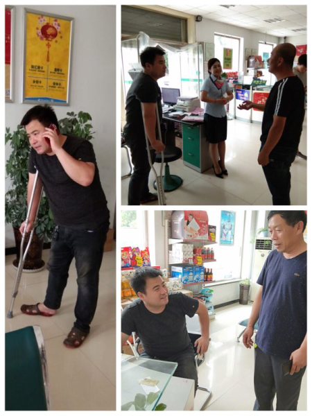 自今年5月份起縣分公司開展4個保險競賽以來,許久靜同志一直放棄周六日休息時間,帶領(lǐng)同事們一起宣傳走訪,邀約客戶,還要對網(wǎng)點每天的出單情況進(jìn)行督導(dǎo),非常辛苦。在他和同事們的不懈努力下,作為一個中等規(guī)模的網(wǎng)點,婁杖子支局發(fā)展期繳保費累計150余萬元。在7月2號的網(wǎng)點保險爆點活動前,他由于搬運大件郵件,不小心從樓梯旁摔倒將腳崴傷,目前走路都成問題,但絲毫沒有影響他完成任務(wù)的信心。7月2號網(wǎng)點爆點活動開始,他拄著拐杖出現(xiàn)在工作崗位,對網(wǎng)點爆點活動開展情況繼續(xù)進(jìn)行督導(dǎo),對自己維護(hù)的意向客戶進(jìn)行邀約,為辦理業(yè)務(wù)的客戶答疑解惑,時刻關(guān)注爆點活動的出單量.....。繁忙的工作讓他的腳又脹又痛,但他強(qiáng)忍疼痛,依舊堅守崗位,同事們看在眼里,既心疼但又感到由衷地敬佩,得到了全體員工的一致贊揚。