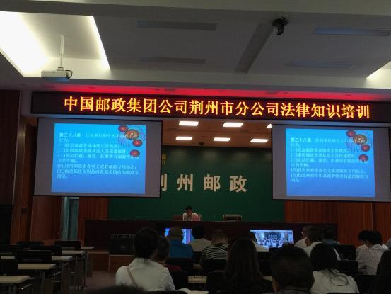 為進一步提高員工的法律意識、行為規范,推動依法治企、依規治企,荊州市分公司于7 月12日召開法律知識視頻培訓會。特邀市分公司法律顧問魯明俊律師為大家講解《郵政法》《荊州市分公司員工管理辦法》,全市300余名干部職工參加了此次培訓。 魯明俊律師以新穎、典型的案例為切入點,講解了《郵政法》的主要內容,重點講解了與快遞服務緊密相關的條款,并對新修訂的《荊州市分公司員工管理辦法》進行講解。