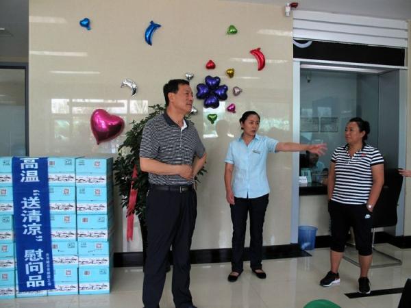 烈日炎炎,市公司領導親臨一線,為基層員工送去清涼、送上關愛,給予大家克服惡劣氣候、戰勝酷暑炎熱的力量,激勵和調動員工不畏困難,發展各項業務的積極性。大家干勁十足,紛紛表示要堅定信心、奮勇爭先,以更加優異的成績來回報企業的關心和支持。 據悉,入伏以來,市分公司工會認真部署防暑降溫工作,深入基層營投儲蓄網點、大專院校收包現場、投遞班慰問,為奮戰在生產一線的郵政員工們送去茶葉、礦泉水、飲料、西瓜、電風扇等防暑降溫物品。為各基層工會下撥專款,要求各級工會組織發揚關心和愛護一線職工的優良傳統,確保一線員工身心健康,不發生一例中暑現象。