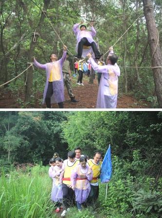 當天雖然天空下著綿綿細雨,卻絲毫沒有影響隊員的興致和參與熱情。本次活動包括“開營儀式”、 “熱身運動”、“水上鋼索”、“野外求生”等多項內容,人員分為兩組:狼隊和鷹隊。兩隊各自穿著各自的戰服,分為黃藍兩色,斗志昂揚地展現了建水縣支行團隊的力量。在團體活動中,主要從溝通、執行力、資源共享等問題進行引導和提煉,讓隊員們在活動中形成團隊凝聚力,學會團隊協作,幫助團隊健康發展。同時,在確保安全的前提下,選擇一片森林區域,精心設置了野外活動,隊員們化身為探險小隊,深入森林,根據線路圖,克服重重難關,完成探險任務。在活動中,隊員積極發揚互幫互助的團隊精神,不拋棄不放棄,讓我們再次看到了建水郵儲銀行這個團隊的堅持和努力,以及一支優秀團隊的成長和蛻變。