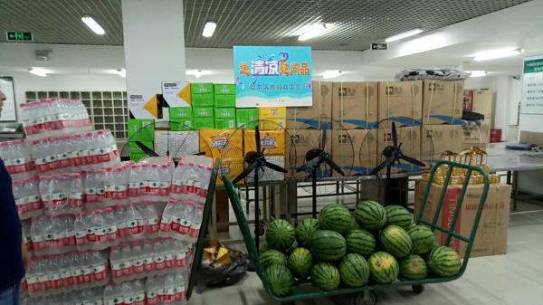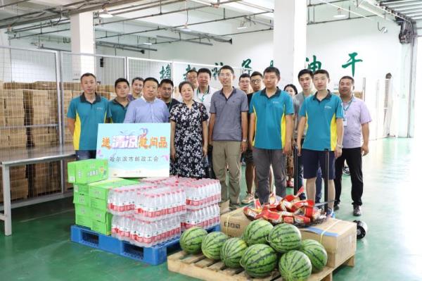 近日,哈市迎來持續高溫天氣,驕陽考驗著每一位堅守在一線崗位的職工,更牽動著市公司領導們的心。7月30日,哈爾濱市郵政工會王毅主席、徐海濱副主席帶隊組成的慰問團隊先后對六個區分公司、函件廣告局商函制作中心、包裹業務局電商運營中心、報刊發行局等15家基層單位奮戰在一線的職工進行了親切的慰問,并送上了防暑降溫用品:西瓜、茶葉、礦泉水、飲料、風扇、電水壺等。