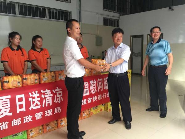 8月14日下午,福建省郵政管理局、福建省快遞行業(yè)協(xié)會(huì)領(lǐng)導(dǎo)一行來到福州市分公司五四北攬投部進(jìn)行“送清涼”高溫慰問。