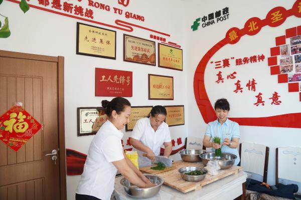 學習交流活動期間,4位勞模先進代表與北極村郵局8位員工同吃同住、跟班作業、互相溝通。她們每天從早上7:30跟班到晚上10:30多,迅速融入到了北極村郵局這個集體中。她們用眼睛看到了北極村郵局員工每天工作13個多小時。游客多時,大家一同為來自四面八方的游客提供耐心、細致和周到的服務,閑暇之余交流工作經驗,暢談人生、理想,憧憬郵政的美好明天。她們用耳朵聽到了用戶們由衷地贊譽郵政員工的優質服務,用心感悟到了“創新、協同、誠信、擔當”的郵政企業精神在北極村郵局體現的淋漓盡致。午間和傍晚,當北極村郵局員工因為忙碌無暇做飯時,她們在職工小家為前臺服務的姐妹們包餃子、炒菜、煎韭菜盒子……香噴噴、可口的飯菜讓員工們吃在嘴里,暖在心上。談到這次北極村郵局學習交流活動,支局長于霞滿懷感激之情:“通過這次學習交流活動,我也在4姐妹身上看到了很多閃光點,我們之間互相交流、取長補短,共同進步,這更加堅定了帶好這支隊伍,把北極村郵局打造成文化名片、精神地標的信心和決心。”同時,4位勞模先進代表去看望了全國勞動模范尹靜,和她一起溝通交流了工作經驗。