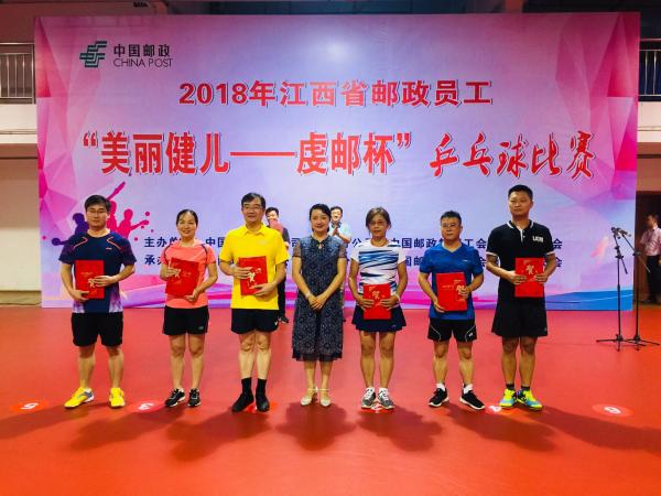 9月6日下午,在27支代表隊近200名運動員、裁判員和工作人員的共同努力下,2018年江西全省郵政員工“美麗健兒——虔郵杯”乒乓球比賽,完成了所有既定的比賽項目,在贛州市體育館圓滿閉幕。省分公司黨組成員、副總經理、工會主席戴書華,省郵政工會副主席胡萍,贛州市分公司黨委書記、總經理熊先仁出席了閉幕式并為獲獎單位和運動員頒獎。閉幕式由胡萍主持。