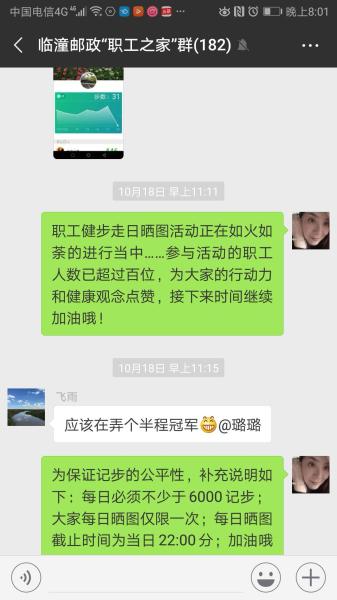 工會為更好的豐富職工精神文化生活,讓大家在繁忙工作之余,感受秋高氣爽的自然氣息,同時強健身體、環保出行,總是不遺余力地組織各種貼近基層、貼近職工,讓偏遠的農村支局所的基層職工,也能廣泛的參與工會活動。此次通過工會組織微信群平臺,每日在群里發布運動計步動態比賽活動,又一次將職工們的凝聚力、行動力及健康理念推向了高潮,參與的職工人數余百位。職工有了健康的體魄和飽滿的熱情,為推動臨潼分公司的工作注入了新的動力。