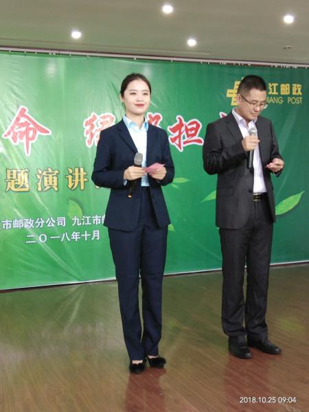10月25日下午,為充分展示企業(yè)良好形象和企業(yè)員工愛崗敬業(yè)、奮發(fā)有為的精神風貌,由九江市分公司和市郵政工會聯(lián)合舉辦了“初心使命 綠郵擔當”主題演講比賽決賽。