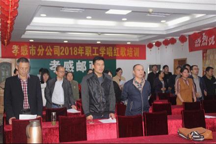 為進一步弘揚紅色文化,增強廣大職工愛黨、愛國、愛企的責任意識,豐富教育活動形式,11月1日,孝感市郵政工會組織職工開展學唱紅歌活動。 市郵政工會邀請了孝感市音樂家協會副主席黃友權進行輔導,職工們興趣很高,學唱《咱們工人有力量》,高亢激昂歡快的曲調和贊歌,唱出了新時代孝感郵政職工的熱情和奉獻精神。為了把唱紅歌活動組織的有聲有色,市郵政工會號召全市郵政同步開展,確定經典紅歌《咱們工人有力量》、《我宣誓》等主要曲目,在全市郵政掀起了唱紅歌、頌黨恩、昂士氣,振奮孝感郵政精神的熱潮。