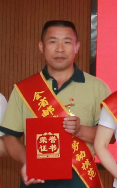 陳久富,今年45歲,一名普通的退伍軍人,中共黨員。現為贛州市定南縣分公司投遞班班長,中共黨員。自2009年參加郵政工作,一直扎根在郵政投遞崗位上,始終腳踏實地,兢兢業業,吃苦耐勞,扎實工作,逐步成長為一名深受客戶喜愛的綠衣使者。在近十年的工作中,他用實際行動踐行了“人民郵政為人民”的服務宗旨,把百年郵政的優質服務傳遞到千家萬戶,在定南乃至贛州郵政投遞隊伍中樹立起一面旗子,連續多年被評為“先進工作者”,2014年評為“全省優秀投遞服務明星”,2015年被評為“贛州市勞動模范”,2018年7月被評為“2014-2017年度江西省郵政企業勞動模范”榮譽稱號。