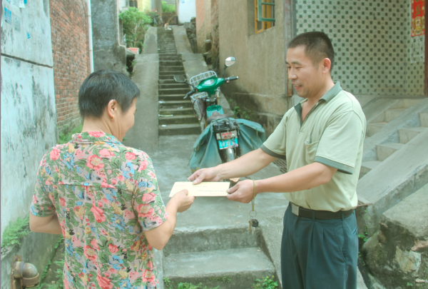 陳久富說:“我熱愛郵政事業,更愛投遞工作,為用戶服務,讓用戶滿意是我的心愿。”在他的投遞工作中,他始終把用戶滿意不滿意、高興不高興作為工作的出發點和落腳點。投遞是個特殊的服務窗口,為了維護好“人民郵政為人民”這個形象,無論刮風下雨,無論烈日炎炎,無論冰天雪地,他都及時準確地將一份份報紙,一封封信件,一個個包裹送到每位用戶的手中,用他的實際行動讓用戶對郵政有一種親切感、信任感。