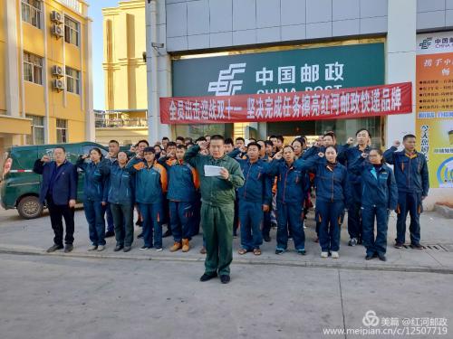 決戰“雙十一”的戰役已經打響,紅河郵政全體干部員工將團結一心、全力以赴,以飽滿的熱情高昂的斗志投入到“雙十一”各項工作中去,不松勁、不懈怠、不退縮、不畏難,勇往直前,圓滿完成決戰“雙十一”各項工作目標! (云南郵政工會)