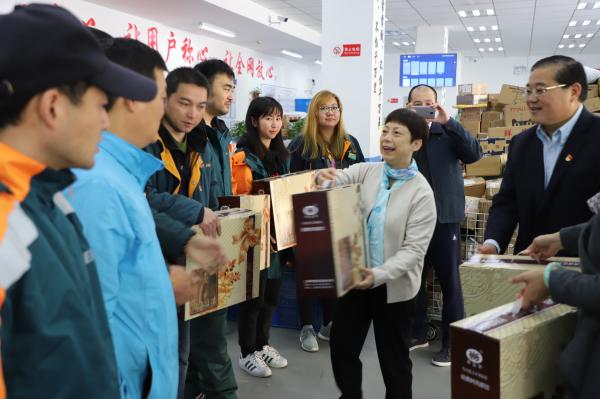 之后,秦主席一行來到了寄遞事業(yè)部莘莊營業(yè)部,了解了營業(yè)部的投送情況,同時也囑咐所有速遞的員工,現(xiàn)在改革后我們都是郵政的一家人,要一起為郵政事業(yè)做貢獻(xiàn),同時秦主席也對在場的員工表示了感謝,感謝他們加班加點的工作,并送上了慰問品。(上海郵政工會)