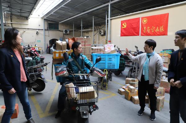秦主席一行先來到了莘莊郵政支局,向支局負(fù)責(zé)人了解了支局在雙十一期間的投送數(shù)量和質(zhì)量以及投遞員加班加點的情況,期間一位因投送郵件時不慎摔破頭的員工經(jīng)過,秦主席細(xì)心的發(fā)現(xiàn)了,并主動詢問員工情況,對員工帶傷工作的精神表示了肯定,同時也關(guān)切地囑咐員工一定要注意出行安全,如果有什么事一定要及時與支局或工會反饋。