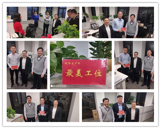 2018年11月1日下午,戰略客戶部工會小組和輪值監督員在全部門組織開展“最美工位”評選活動。此次正式評選邀請到部門周穎輝總經理和龐任平副總經理參加。以布置干凈整潔、擺設美觀大方、工作方便高效等幾個方面為標準,最終代博夏、林政、楊官雨、王宇哲、高曉宇、孔悅、吳宏亮、邱龍庭等八位同事的工位獲評“最美工位”榮譽稱號,周總、龐總向上述同事頒發了本期“最美工位”流動桌牌。