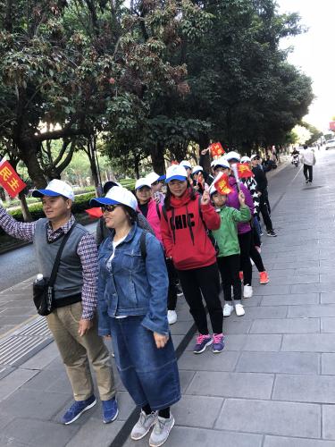 為做好組織工作,工會擬定了詳盡的活動方案,對徒步線路作了合理的規劃,對行進途中如何開展宣傳作了安排,下發了印制著社會主義核心價值觀的手持小旗。活動當日,大家早早來到集合點整裝待發,在長約7公里的徒步路上,職工們或交流生活或拍照留影,個個倍感興奮。抬頭仰望碧藍的天空,做個深呼吸清醒的空氣洗去了工作的辛勞,人人精神抖擻。一路自然的景致,深深觸動了職工們對大自然的向往和熱愛,臉上洋溢著快樂的笑容。