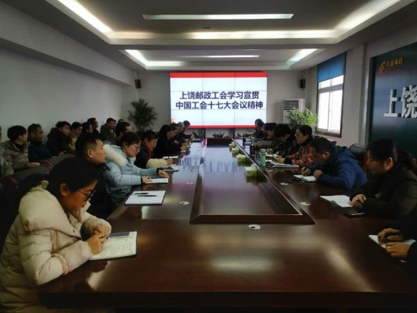 為深入學習宣傳貫徹習近平總書記重要講話精神和中國工會十七大精神,進一步調動和激發饒郵廣大職工學習貫徹中國工會十七大精神熱情,12月13日上午,上饒市郵政工會組織召開學習宣傳貫徹中國工會十七大精神專題會,市郵政工會主席李軍、副主席秦菲、市分公司部門工會主席、專兼職工會干部及部分職工代表共40余人參加了專題學習。