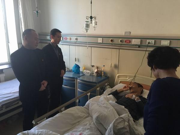 12月18日,乾安縣分公司副總經理楊光與工會主席鄭丙亮前往乾安縣醫院看望慰問重病職工曲曉強同志,把愛心捐款送達他手中,為他送去企業的關懷和溫暖。