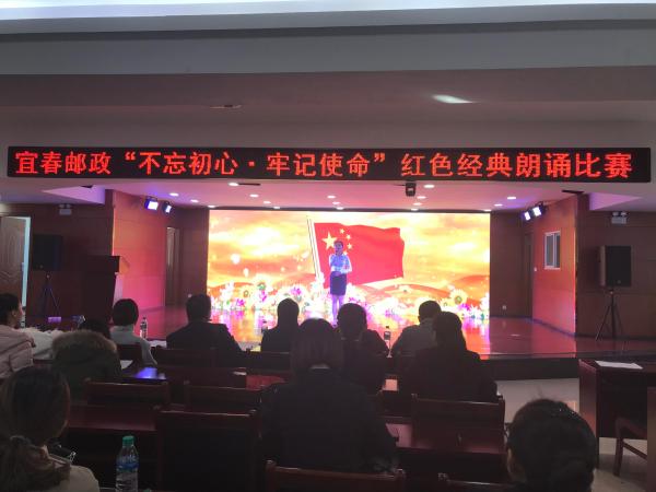 誦讀紅色經典,牢記初心使命。為深入推進學習貫徹黨的十九大精神,12月18日上午,宜春市郵政分公司工會和市分公司黨委黨建工作部聯合舉辦了“不忘初心 牢記使命”紅色經典誦讀比賽活動,以讀原著、學原文、繼承和發揚黨的優良傳統,引導黨員干部、職工進一步堅定理想信念,激發干事創業動力活力,增強企業凝聚力、向心力和戰斗力。來自宜春10個縣(市、區)分公司和市本3個部門工會13支隊伍,共28名選手參加了比賽。