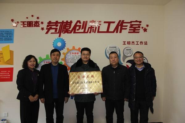 2018年12月20日上午,“王明杰勞模創新工作室”省級示范點授牌儀式在臨江市分公司舉行。吉林省總工會經濟部處長陳闖專程趕赴臨江,為王明杰頒發“省示范性勞模和工匠人才創新工作室”榮譽牌匾。白山市分公司總經理董華君、吉林省郵政工會經濟部部長施向群、臨江市分公司總經理尹俊出席授牌儀式。