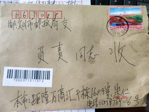 近日,文山州分公司營業局收到一封來自文山市炬龍萬商匯一位78歲名叫朱仁的老同志寫來的表揚信,信封背面寫著“多年來的服務,非常感動”,簡短的幾個字表達了老人對郵政投遞員的感謝和敬意。