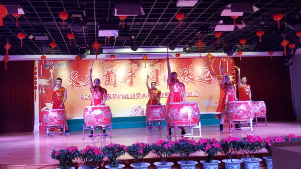 晚會在《威風鑼鼓》節目中拉開序幕,六名鼓手以激情的鼓點、恢宏的氣勢、鏗鏘的節奏和昂揚的豪情擊出吉安郵政人一往無前、奮發圖強的傲骨雄風,隆隆的鼓聲瞬間讓會場氣氛燃燒起來。
