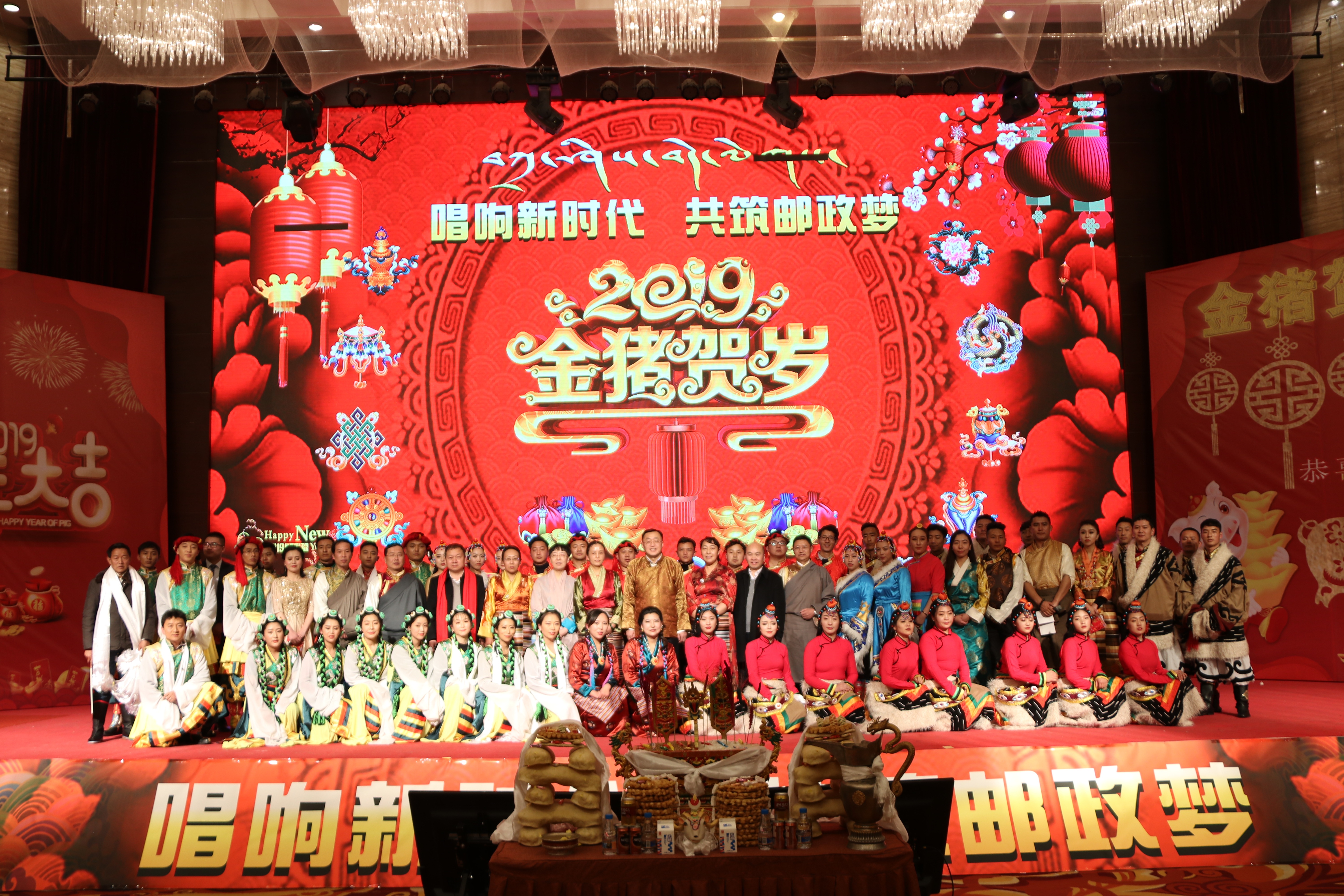 1月24日,在2019年新春佳節及藏歷新年即將來臨之際,中國郵政西藏分公司、郵儲銀行西藏分行、區寄遞事業部、拉薩市分公司聯合舉辦以“唱響新時代 共筑郵政夢”為主題的春節、藏歷新年聯歡晚會。出席本次聯歡會的有區分公司全體班子成員、郵儲銀行在家班子成員、區寄遞事業部班子成員及區分公司機關部室全體干部職工、其它單位三級副以上領導。會議還邀請了拉薩郵政單位的部分勞模代表和退休老職工,共計200余人。