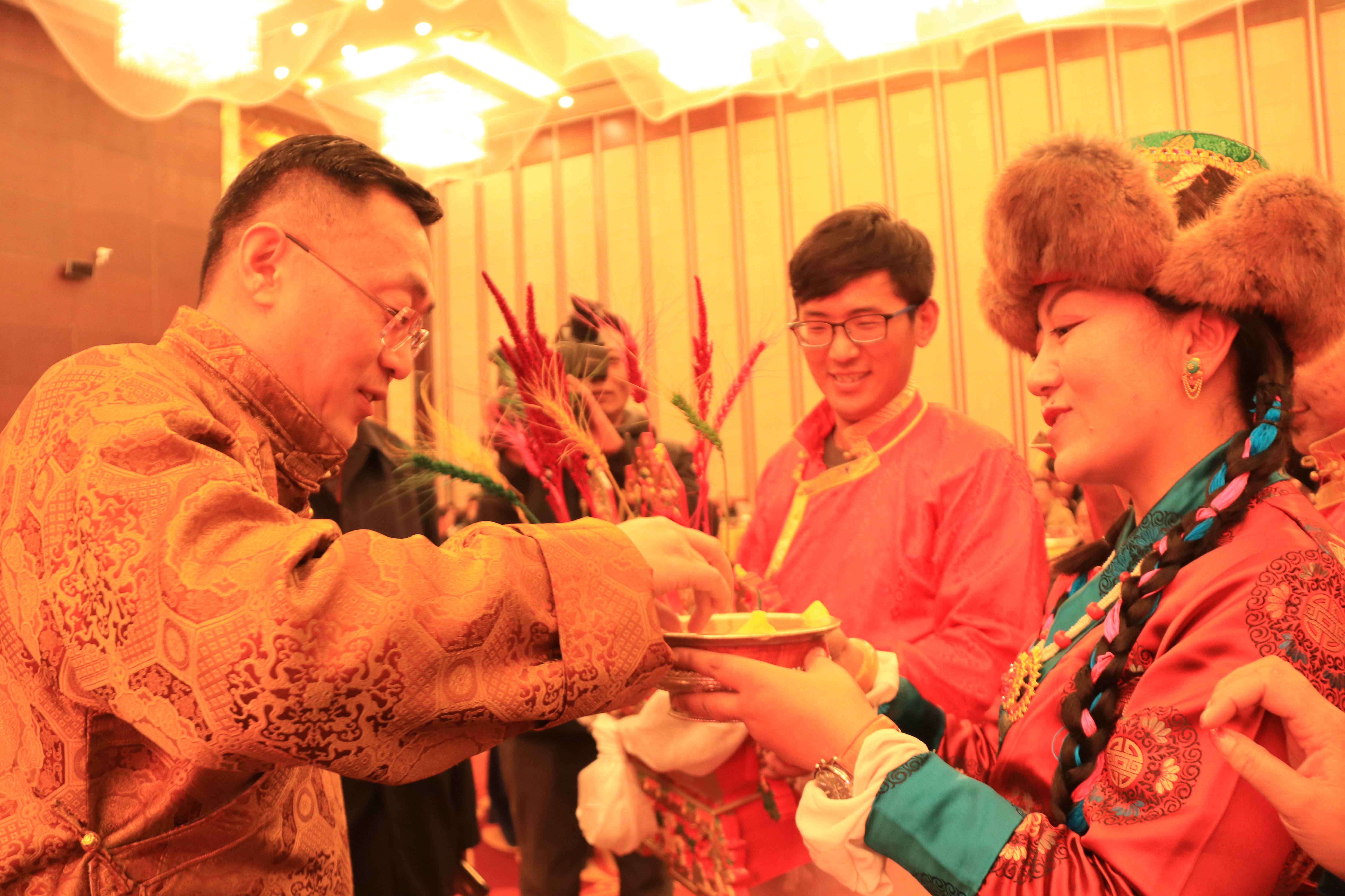 在晚會現場,區分公司領導分頭向參加聯歡晚會的在場全體人員敬獻了潔白的哈達,送去了區分公司黨政工的節日問候,并對退休老職工及勞模代表贈送了節日慰問品。
