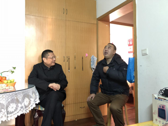 在困難職工張宗榮家中,陳總與他親切交流,了解他術后的康復情況及現在的家庭狀況,勉勵他鼓起勇氣和病魔作斗爭,在退休前站好退后一班崗,早日安享晚年退休生活。(上海郵政工會)