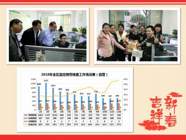 在監控預警團隊,張榮林副總經理詳細詢問了監控預警項目的運行情況。當看到廣西預警信息數量呈下降態勢,核查發現的問題質量逐步提升,合規系統的震懾作用逐步發揮時,張榮林副總經理對我區監控預警核查工作表示了肯定。最后張榮林副總經理為團隊員工送上了新春祝福和問候,并鼓勵這支年輕的隊伍繼續努力,做好風險預警防范工作。