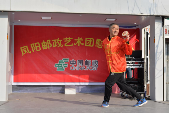 在2019年新春佳節來臨之際,結合當地務工人員返鄉過節的金融宣傳旺季,鳳陽縣郵政工會以宣傳金融業務、企業文化為載體,組建鳳陽郵政藝術團,年前二十天覆蓋鳳陽各大鄉鎮,舞臺上通過花鼓戲、口技、舞蹈等多種文藝節目并穿插金融知識問答形式展開;舞臺下通過擺放宣傳海報、散發宣傳單頁、懸掛橫幅等多種形式推廣金融業務?;顒蝇F場人頭攢動,深受群眾歡迎,通過本次活動進一步拉近郵政與鄉鎮群眾的聯系,樹立郵政形象、打響郵政品牌,促進郵政業務的發展。