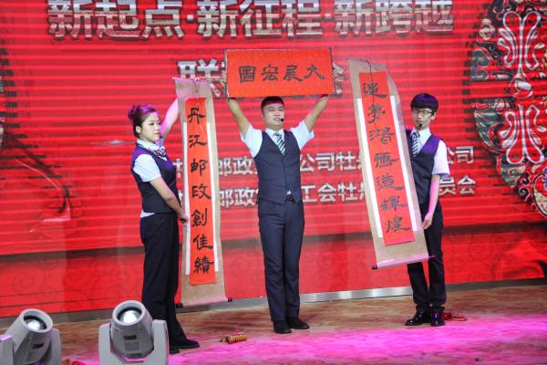 為進一步激發企業的內生動力,喚醒企業的內部活力,使企業在新時期展現出勃勃生機。牡丹江市郵政分公司工會借助一屆一次職工代表大會召開契機,精心組織籌劃,于2月16日下午職代會召開后,舉辦了“新起點,新征程,新跨越”2019年聯歡晚會暨“開門紅”頒獎晚會。市分公司領導班子、全體中層干部、區縣分公司領導班子及一屆一次職代會先優模代表近200人參加了晚會。市分公司黨委書記、總經理高廣忠在晚會中致辭,鼓勵大家在新的一年里,同心協力,共同攜手,再創輝煌。