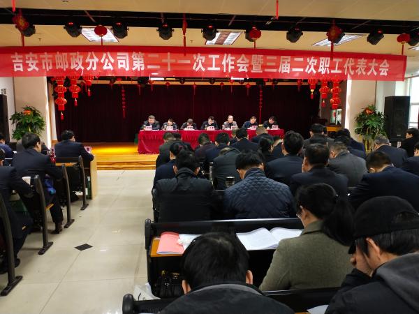 3月6日,吉安市分公司召開了第二十一次工作會暨三屆二次職工代表大會。會議聽取并審議通過了市公司黨委書記、總經理王健所作工作報告,表彰了2018年度全市郵政“品質發展杯”勞動競賽等活動先進單位。