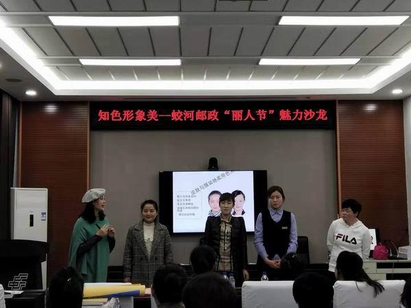 在“三八”國際勞動婦女節來臨之際,蛟河市分公司工會舉辦了“知色形象美”——蛟河郵政“麗人節”魅力沙龍活動。特邀專業美學老師為女職工講授如何做一名魅力女性、解析職場形象規則等有關女性知色美話題的講座。現場通過案例分析、色彩測試、換裝變身、打造分享等內容,充分展示了郵政女職工的美麗與魅力,進一步提升了女職工的自信心與知性美。(吉林郵政工會)