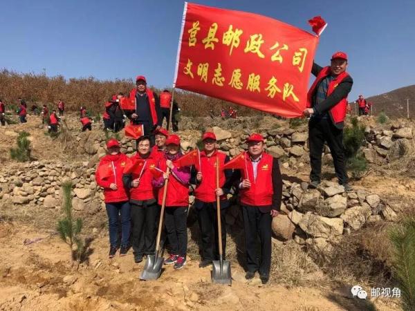 為認真貫徹落實“綠色發展”理念和日照市委市政府“生態立市”戰略。3月13日,日照市郵政分公司組織干部員工在嵐山區中樓鎮潯河峪綠化現場植樹點開展植樹造林活動,為全市生態建設再添新綠。早上7點整,市分公司李獻成副總經理與各部門選派的18名干部員工一起趕往植樹活動現場。植樹現場,參加植樹的人員揮锨鏟土,扶苗填坑、培土夯苗、踩實澆水,每一道工序都做得認真到位,大家分工協助,相互配合,現場一派熱火朝天的忙碌景象。經過大家兩個多小時齊心協力的勞動, 近300株松樹苗全部栽植完成,原本黃土斑駁的荒山披上了綠裝,變得生機盎然。與此同時,莒縣和五蓮郵政分公司也在植樹節當天開展了義務植樹活動。通過此次義務植樹活動,全市郵政干部員工牢固樹立了愛綠植綠護綠的意識,深刻踐念。
