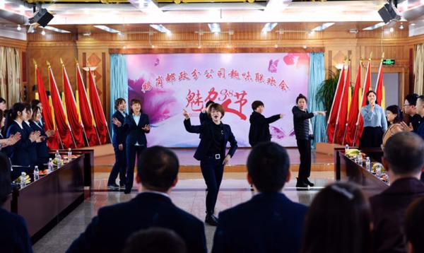三月,陽光明媚,生機勃勃,到處都洋意著濃濃的春意。在這春意盎然的季節里,為了慶祝第109個“三八”國際勞動女節,體現鶴崗郵政對女同胞的關愛,同時豐富大家的業余文化生活,鶴崗郵政工會舉辦了“三八”節趣味聯歡活動。機關、專業、支局120余名員工歡聚一堂,以一曲動感十足的《萌萌噠》集體舞蹈拉開了活動的序幕。陳廣東副總經理向女職工們做節日致辭,給全體女職工們送上親切慰問和祝福,期望她們在今后的工作和生活中爭做女強人,巾幗不讓須眉。在表彰環節中,公司領導為女職工建功立業競賽中的先進集體和先進個人頒發獎品和證書;在游戲環節中,開展了快樂大搬家、看口型猜詞語、吸管運輸等趣味活動,大家積極參加,現場氣氛熱烈,將整個慶祝活動推向高潮。