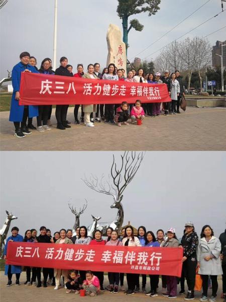 為慶祝“三八”婦女節(jié),豐富廣大女職工的業(yè)余生活,堅持快樂工作,健康生活的理念,全面提升職工身體素質(zhì),打造“文明、健康、快樂”的企業(yè)氛圍,展現(xiàn)企業(yè)良好精神風(fēng)貌,今天下午,許昌市分公司組織女職工齊聚許昌鹿鳴湖畔,共同參加“慶三八活力健步走 幸福伴我行”活動。