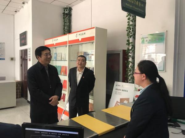 3月27日下午,中國郵政集團工會廉福臣副主席一行到天津市郵政分公司調(diào)研指導(dǎo)職工小家建設(shè)工作,深入東麗區(qū)分公司張貴莊支局、郵儲河北支行和河北區(qū)分公司獅子林投遞分局等基層一線,查看職工小家場地、了解建設(shè)情況,并與一線職工座談。