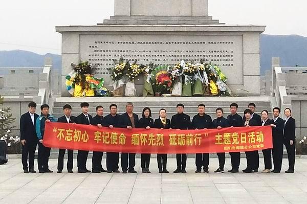為緬懷革命先烈,繼承革命傳統(tǒng),4月4日上午,圖們市分公司各黨支部聯(lián)合開展了“不忘初心、牢記使命、緬懷先烈、砥礪前行”主題黨日活動(dòng),此次活動(dòng)旨在增強(qiáng)廣大黨員的自信心和自豪感,將愛國情懷投入到實(shí)際工作中。
