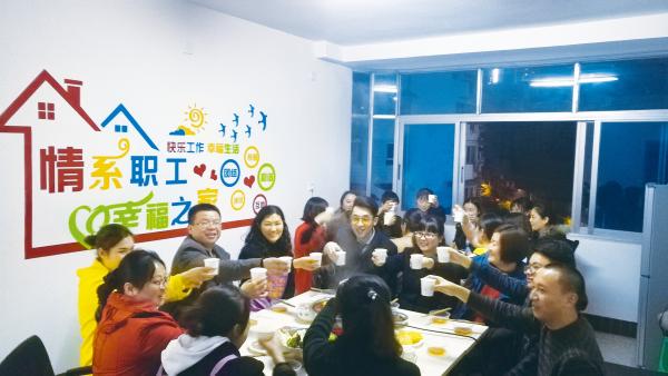 原來,結(jié)束了一天忙碌的工作后,渝北分公司“掛包幫”人員正和網(wǎng)點(diǎn)員工一起,為同事們“開小灶”。大家分工均勻,有的炒料,有的洗菜,有的切菜,有的擺盤,忙得不亦樂乎!不多時(shí),鮮香麻辣的火鍋出爐,大家圍坐在一起親如家人,熱熱鬧鬧地邊吃邊聊。先回“家”的,自夸廚藝好,晚回“家”的,自覺舉手洗碗……歡聲笑語間,每個(gè)人臉上都洋溢著幸福的笑容。在這個(gè)溫暖的“家”里,美味的食物滿足了胃,幸福的相聚溫暖了心,大家齊齊舉起手中的可樂,祝愿工作蒸蒸日上、日子越過越火!