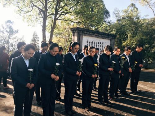 4月10日工會組織30多名黨員干部赴保山烈士陵園進行祭掃,表達對革命烈士的無限哀思和崇高敬仰,追憶紅色歲月,傳承、弘揚革命精神,堅定理想信念,珍惜現(xiàn)幸福生活。祭掃現(xiàn)場莊嚴(yán)肅穆,大家佇立在烈士紀(jì)念碑前心潮澎湃,那些為了民族獨立和人民解放,為了建立社會主義新中國,不惜拋頭顱、灑熱血的革命先烈的英雄壯舉在腦海浮現(xiàn),大家懷著無比崇敬的心情為革命烈士默哀、敬獻花藍,表達對革命先烈的深切悼念和深深的敬意。之后參觀了紀(jì)念墻,上面清晰地記載了解放軍十四軍四十一師和邊縱七支隊101位烈士不畏艱險,為抗日、剿匪英勇戰(zhàn)斗的英雄事跡,生動詮釋了革命先烈對黨忠誠、勇于獻身的革命精神, 與此同時,騰沖、龍陵等縣分公司也相繼組織祭掃活動。