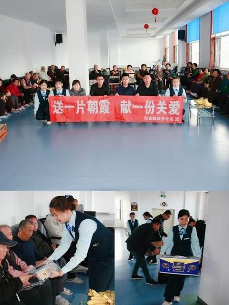 為進(jìn)一步弘揚尊老、愛老、敬老、助老的中華民族傳統(tǒng)美德,倡導(dǎo)“奉獻(xiàn)、友愛、互助、進(jìn)步”的志愿精神,4月26日,和龍市分公司組織了12名郵政青年志愿者,來到和龍市榮光敬老院開展“送一份朝霞,獻(xiàn)一份關(guān)愛”主題活動。