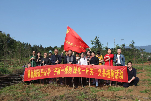 春回大地,萬物復蘇,郴州市分公司為落實集團公司綠色郵政建設行動,為營造系統綠色環保氛圍也為倡導郵政員工生態文明理念。2019年4月17日下午,工會組織機關部分員工進行植樹活動,積極響應省公司“手植一棵樹 綠化一片天”的活動號召,市分公司副總經理李軍、副總經理周建湘親臨現場。簡要集合并進行安全事項講解之后,植樹活動有序進行,大家分工明確、默契配合,揮舞鋤頭翻新土,扶植新苗列成行,完成植樹任務200株。一片新綠賦予大地生命,分公司員工親近自然、保護環境,完美詮釋了保護生態、和諧共存的美好理念。(湖南省郵政工會)