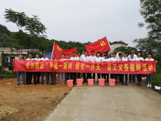 為認真落實集團公司“手植一顆樹,綠化一片天”郵政員工義務植樹活動的工作要求,培養廣大郵政職工生態文明理念,推進生態文明建設,株洲郵政分公司于5月16日組織各單位部門工會主席和工會小組長前往郵政扶貧點----醴陵市明月鎮江邊鋪村進行了義務植樹活動。 早上8:00., 在分公司工會主席周時興的帶領下,參加義務植樹活動的郵政職工早早在院內集合,集體乘車前往植樹地點。到達江邊鋪村后,全體郵政干部職工很快就投入了植樹勞動,周時興主席帶頭植下了第一顆最大的桂花樹。植樹現場熱鬧非凡,大家分工協作,有的挖坑,有的澆水,有的扶樹苗,栽的認真,干的賣力,整個植樹活動現場一片熱火朝天的勞動景象。經過一上午的努力,100顆桂花樹苗栽植完成。微風中搖動的樹苗,它是汗水的凝結,希望的寄托,未來的象征。 江邊鋪村村支部書記主動帶領部分村民在現場指導、協助植樹,對株洲郵政干部職工來該村義務植樹表示衷心感謝并給予了高度贊揚。圖為株洲郵政分公司義務植樹現場。(湖南省郵政工會)