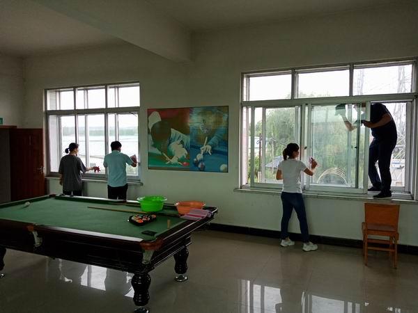 廣大黨員來到東盛支局后,對“職工小家”的內外環境進行了認真清潔。在勞動現場,黨員干部率先垂范、老黨員身先士卒、年輕黨員和入黨積極分子沖鋒在前,大家手持掃把、水桶、拖布、臉盆、抹布等保潔工具,對小家庭院進行了清掃,對支局門窗進行了擦拭,對室內地面進行清潔,在炎熱的夏日里,一個個干得熱火朝天,汗流浹背,為東盛支局“職工小家”營造了一個干凈整潔的工作環境與生活環境。