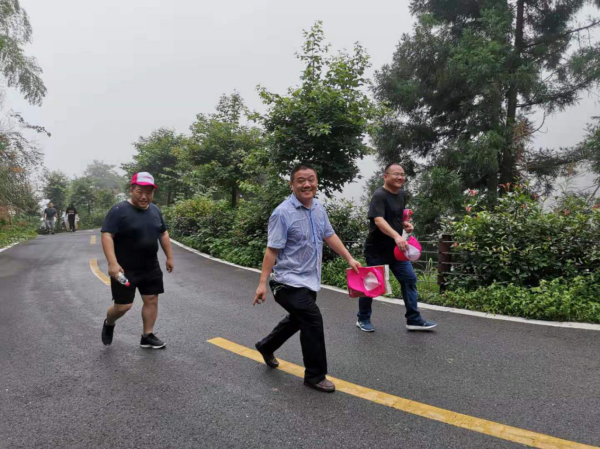 活動(dòng)分為五個(gè)小組,各小組整齊列隊(duì),大家精神飽滿、整裝待發(fā)。工會(huì)主席彭主席一下出發(fā)令,全體人員爭先恐后,在彩旗引領(lǐng)下開始向山頂進(jìn)發(fā)。